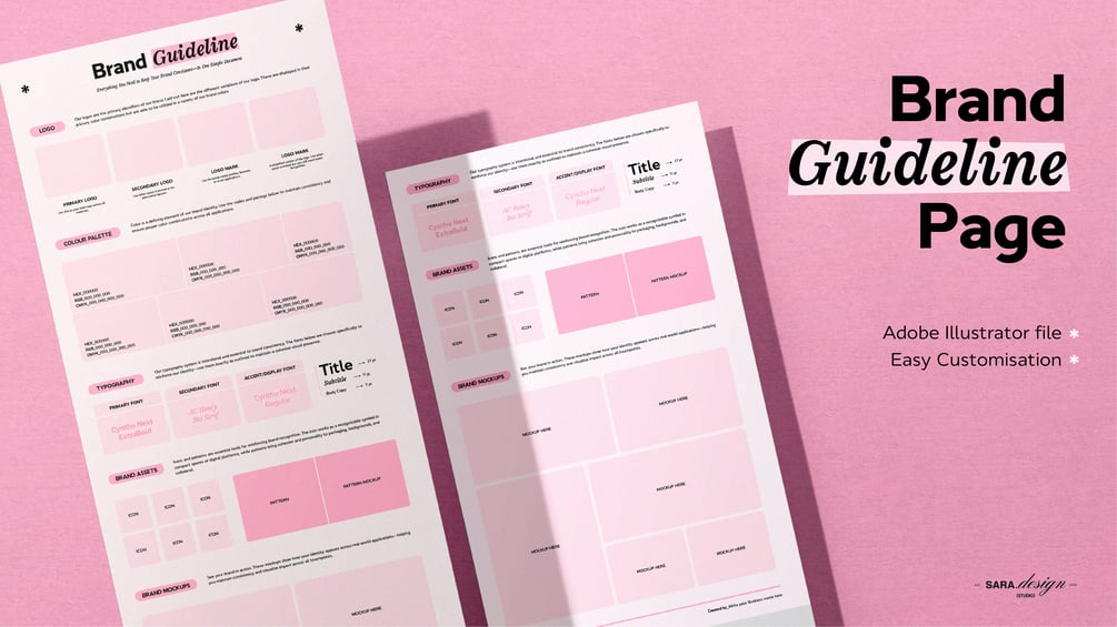 This one-page brand guideline template is built specifically for designers who want to deliver clear, polished brand documentation in a concise, easy-to-use format. Ideal for freelance designers, studios, and creatives working with small businesses, startups, or fast-paced projects.